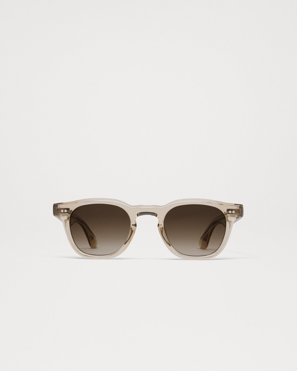 01 har en klassisk avrundet silhuett med en skulpturell stangkonstruksjon. Utstyrt med UV-beskyttende CR39-linser, sølvtonede naglehengsler og avsluttet med en avfaset panne for en elegant profil.