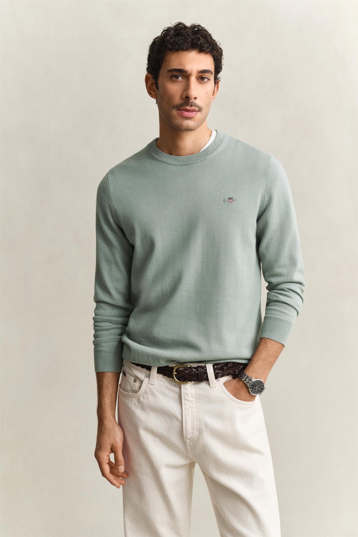 Denne klassiske genseren er laget av bomull, og kommer i en normal passform med en liten brodert GANT-logo på brystet. Bruk den med jeans, penbukser eller chinos, denne genseren passer med alt.