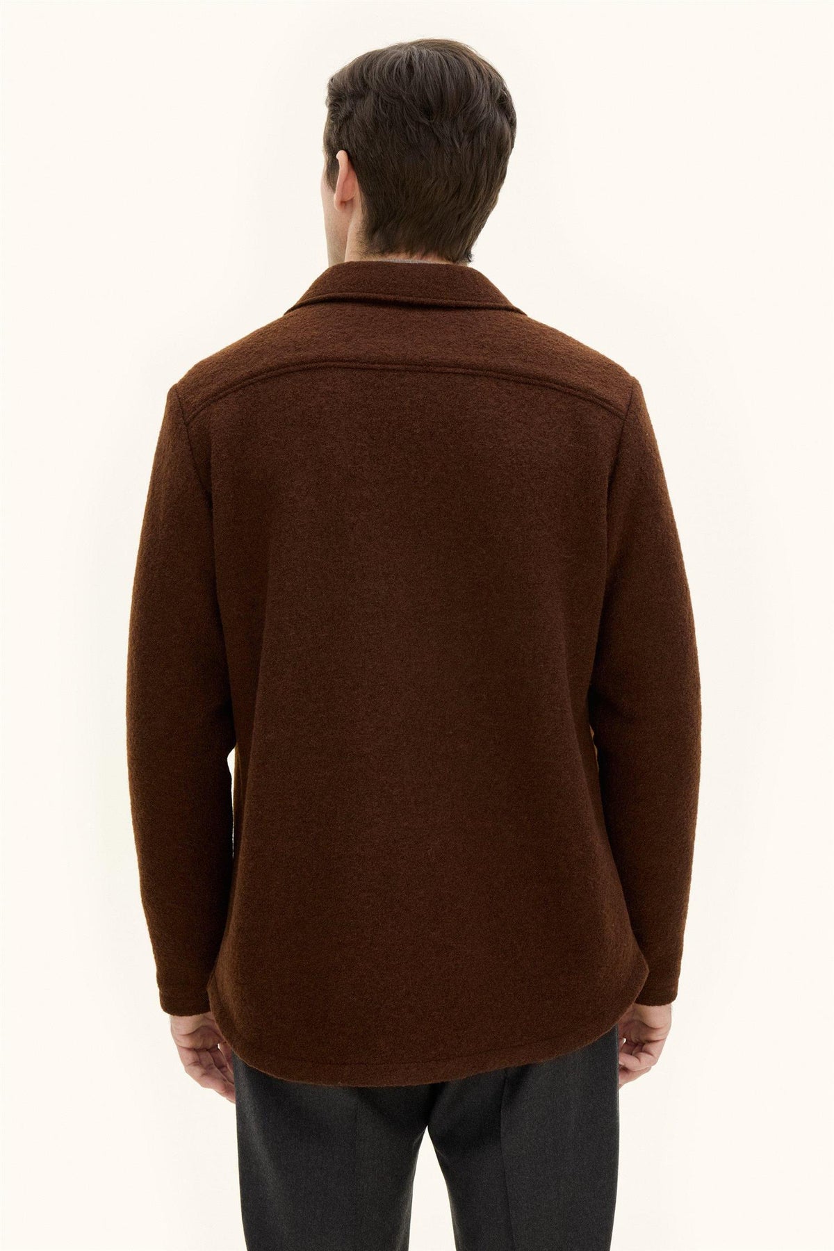 Den stilige Maverick Jacket er en allsidig overskjorte laget av myk 100% ull, som kombinerer raffinert skreddersøm med praktisk eleganse. Den skreddersydde, vanlige passformen gir et sofistikert preg, perfekt for enhver anledning.