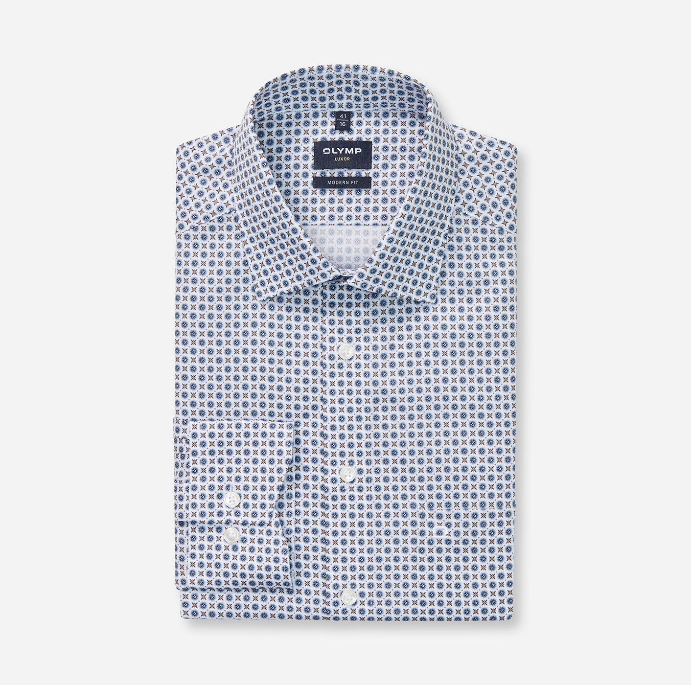 OLYMP Luxor modern fit-skjorten presenteres innovativt i sesongens nøkkelfarger. Den sporty New Kent-kragen harmonerer med den tettsittende passformen. Stoffet i 100 prosent bomull er naturlig elastisk, pustende, hudvennlig og strykefritt.