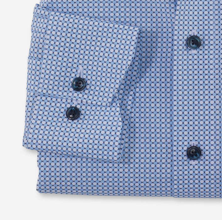 Attraktiv minimal design med en aksent på blå og subtilt skimrende forandring bringer våren inn på kontoret. Med fint bomullsgarn, garanterer det behagelige kjølige poplinstoffet hudvennlig komfort. Den litt skreddersydde businessskjorten er pustende og lett å ta vare på og stryke. Uten brystlomme.