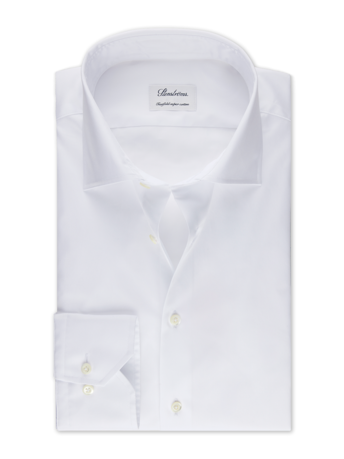 Denne Slimline twillskjorten er laget av twofold bomull. Skjorten har perlemorsknapper, enkle mansjetter og cut away-krage.