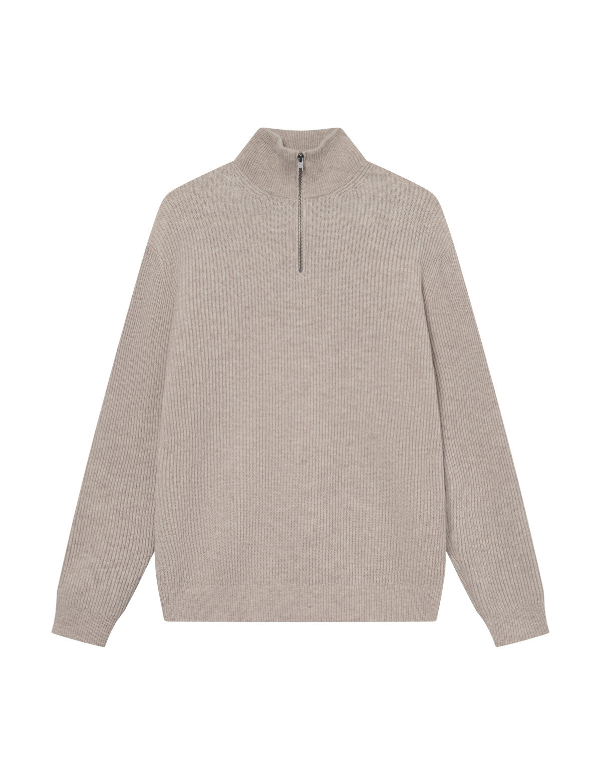 Eduard Half-Zip Knit Jumper er en stilren og komfortabel genser laget av 100% ull. Denne genseren er perfekt for de kjøligere dagene, og gir både varme og stil. Den lette sandfargen gjør den enkel å kombinere med ulike antrekk.